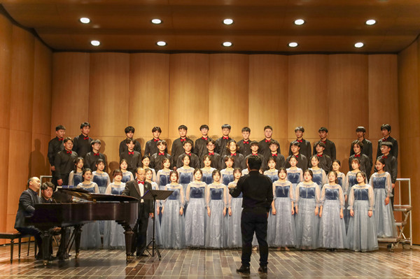 “飞来的信件,像那彩色的花瓣,是写给老师的问候,是送来优秀的答卷。”是青春合唱团的开场曲目,由陈燕翔带来的深情动容,对音乐的精雕细琢,不难看出陈燕翔对这支合唱团所花费的心血和付出。在音乐会即将结束时,徐冉带领合唱团再次唱响,将这首歌献给了陈燕翔和教师这份职业,感谢陈老师无私地对员工的培养和对公司工作的支持,借此表达对陈燕翔老师的不舍与依恋。“陈老师非常好,大家都很喜欢他,因为他即将面临退休,我们想借此曲欢送他。”音乐学专业2021(2)班的栾怡蕊说。她介绍,这次的合唱节目从半学期前就开始排练,在排练课上,全体师生都在“抠”细节,认真地训练每个声部,力求完美。