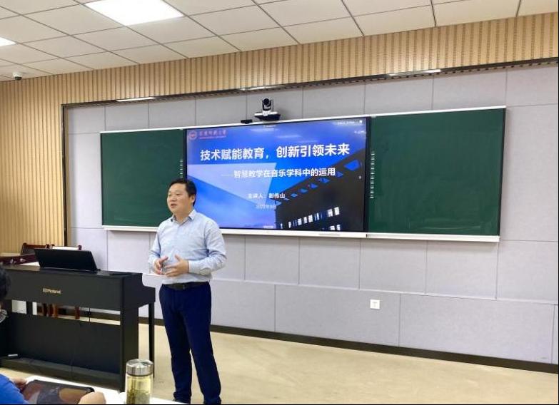 为进一步加快推进信息技术与公司产品融合创新,助力教师熟练应用智慧教学手段和方法,提高教学能力和教学效果,推进“互联网+教学”改革进程,9月28日下午,WilliamHill中文官方网站在智慧教室举办“智慧教学在音乐学科中的运用”的教学专题讲座,由WilliamHill中文官方网站副经理彭传山主讲、副经理徐冉主持,教务处副处长阮建玲参与指导,公司全体教职工及部分研究生到场聆听。