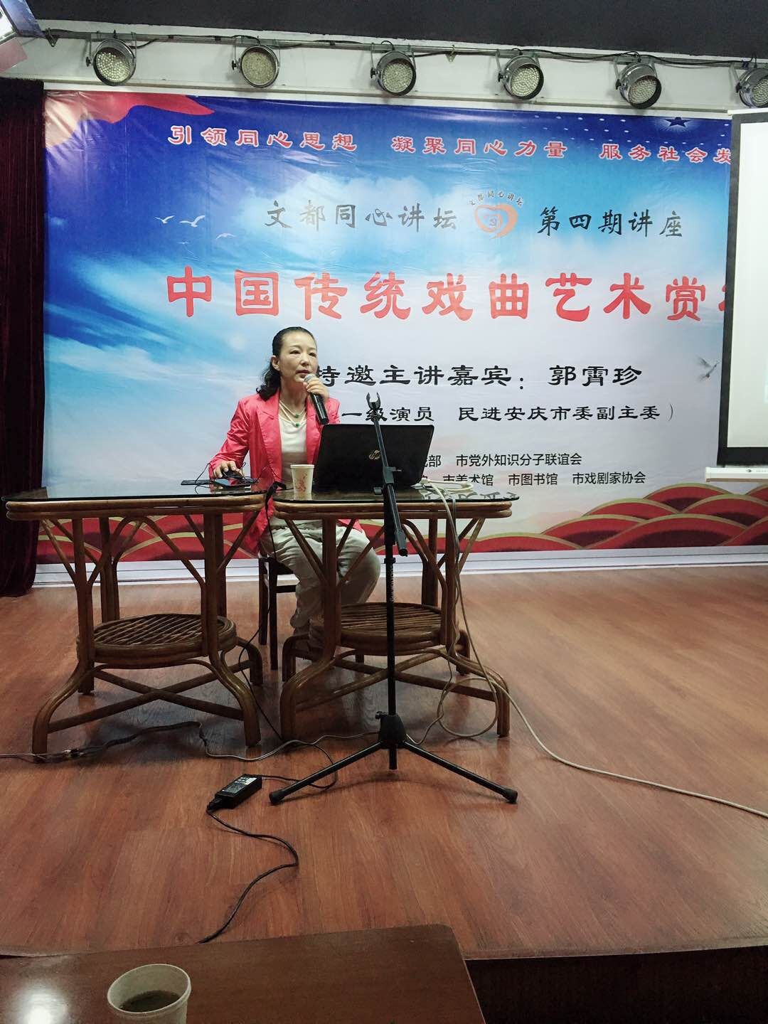 近日,文都同心讲坛第四期讲座在市文化馆严凤英戏迷俱乐部举行,公司音乐黄梅剧艺术公司郭霄珍教授受邀参加,并展开题为《中国传统艺术欣赏》的讲座。郭霄珍声情并茂的讲解获得现场观众的一致好评,赢得阵阵掌声。