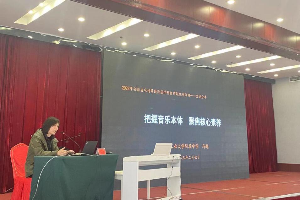 2023年27,安徽工业大学附属中学马超老师分别为2022年安徽省“国培计划”农村紧缺薄弱学科教师短期集中培训项目——艺术(音乐)小学音乐班和中学音乐班开展系列讲座第三场《深入音乐本体、聚焦核心素养》。