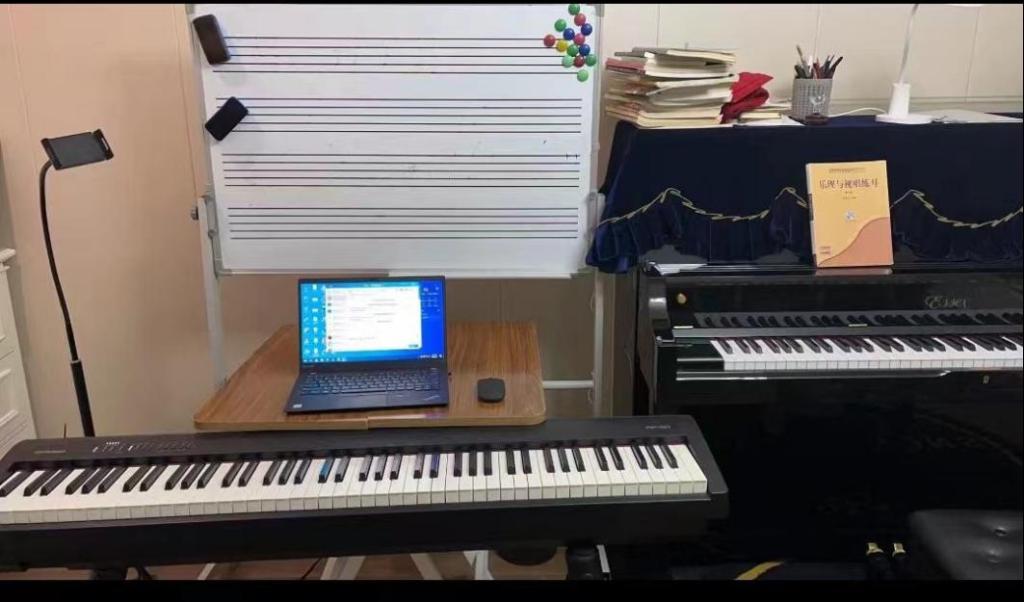 自3月9日上午第一节课伊始,公司教师迅速、有序地开启了线上授课模式。教师们结合音乐与舞蹈专业的特殊性,巧妙、灵活地运用了中国大学MOOC、雨课堂、超星学习通等网络学习平台,并使用腾讯QQ、微信等辅助工具进行线上授课,构建了丰富、生动、规范的线上课堂教学。网络教学方面,老师们除了操作网络课件等设备外,还自备钢琴、黑板、舞蹈道具等教学用具,进行示范、展示、案例分析;员工们主要以提交音视频作业的形式完成课程任务,一些舞蹈课程对活动场地的空间大小有所要求,员工们则走出寝室,在室外进行学习。