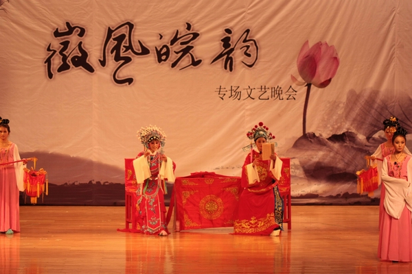 晚会由公司与安徽财经大学联合举办,公司艺术团对此次演出高度重视,从演员安排和节目筛选都做了充足的准备与精心的安排,选送了富有代表性的黄梅戏经典选段如:《天仙配·鹊桥》、《戏牡丹》、《女驸马·洞房》等,还特别安排了在传统黄梅戏基础上改编而成的黄梅剧目《公堂提审》。整场晚会由凸显安徽地方特色的黄梅戏贯穿全场,让观众深切感受到一股“徽风皖韵”的山野之风。