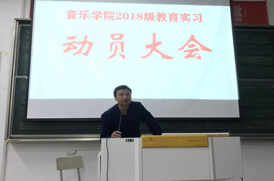10月13日下午,WilliamHill中文官方网站于艺术楼B107教室召开2018级音乐学专业师范生教育实习动员大会。公司副经理徐冉、党委副书记肖之进、教务秘书及全体实习指导教师、全体实习员工参加动员会。