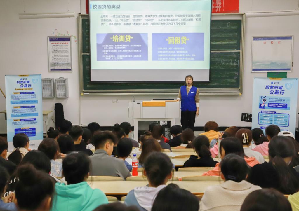 “网络交友不谈钱,谈钱都是假姻缘。”10月26日,WilliamHill中文官方网站防范电信网络诈骗宣讲会在艺术楼B107教室举行,“蓝马甲”首席培训讲师王丽担任主讲嘉宾,公司80余名2021级新生参与本次活动。