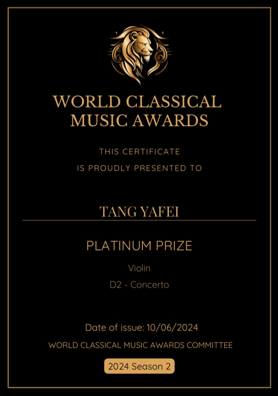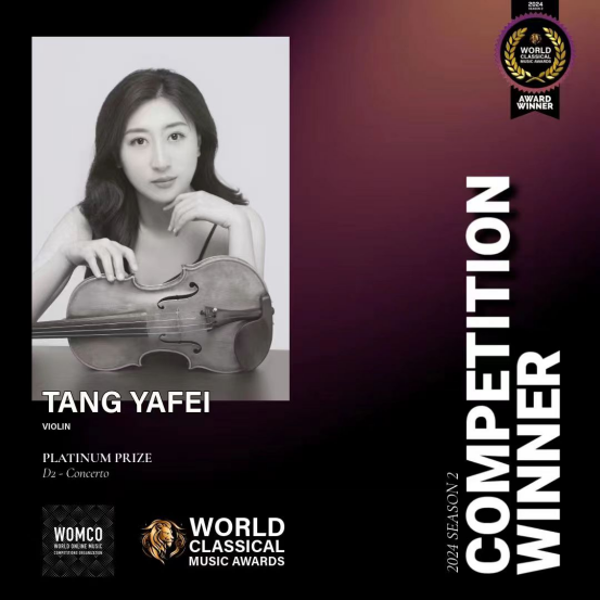 祝贺公司青年教师唐雅菲博士获得世界古典音乐奖比赛协奏曲组第1名