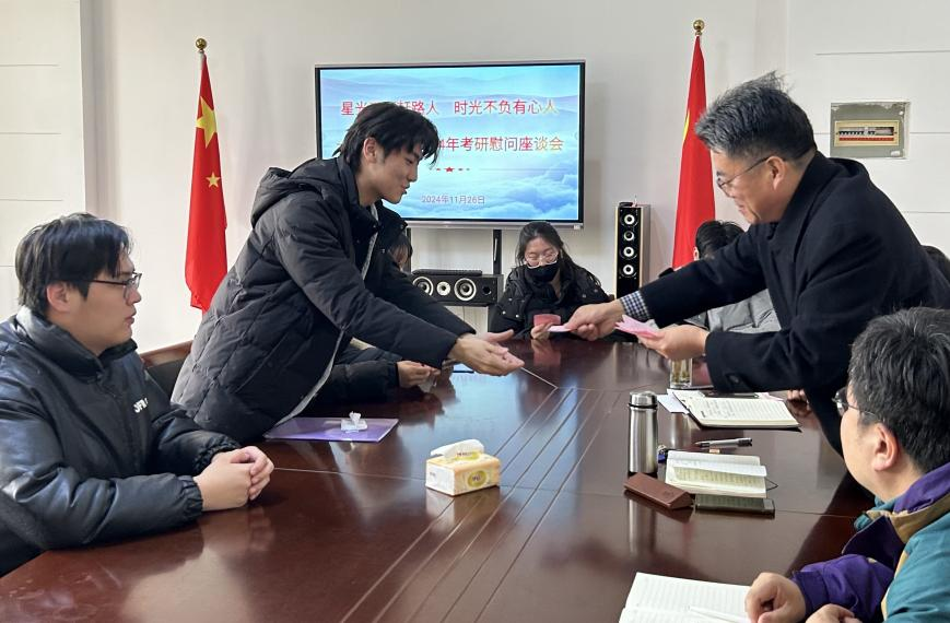 座谈会上,张铭亲手为同学们发放“考研加油卡”,卡片上写着美好祝福。这不仅是物质上的关怀,更是精神上的巨大鼓舞,让在场的每位同学都深刻感受到了来自公司的温暖和支持。座谈会上,同学们纷纷发言,表达考研的信心和决心,座谈会轻松而愉快。