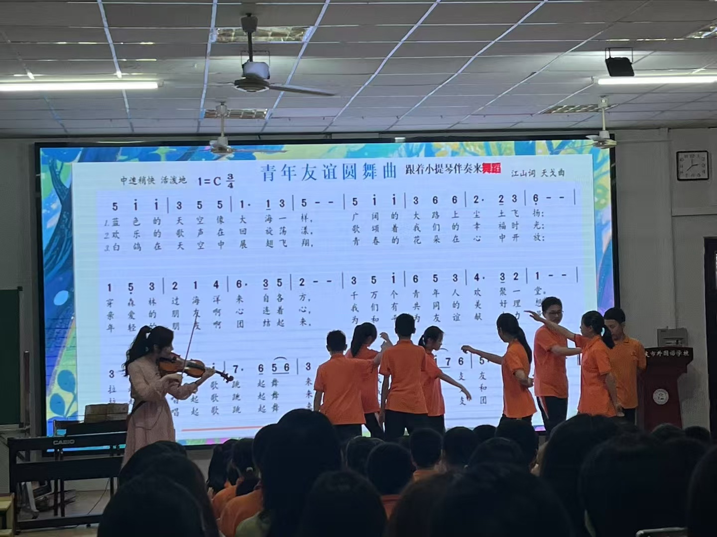 安庆市外国语公司西区初中部陈校助热情接待了公司见习师生,在陈校助的引领下,公司师生一行参观了校园环境,深入了解了安外的历史传承。师生们现场观摩了吴昊老师执教的音乐公开课《青年友谊圆舞曲》,在课后讨论环节,吴昊老师与同学们分享了教学实践中的宝贵经验。