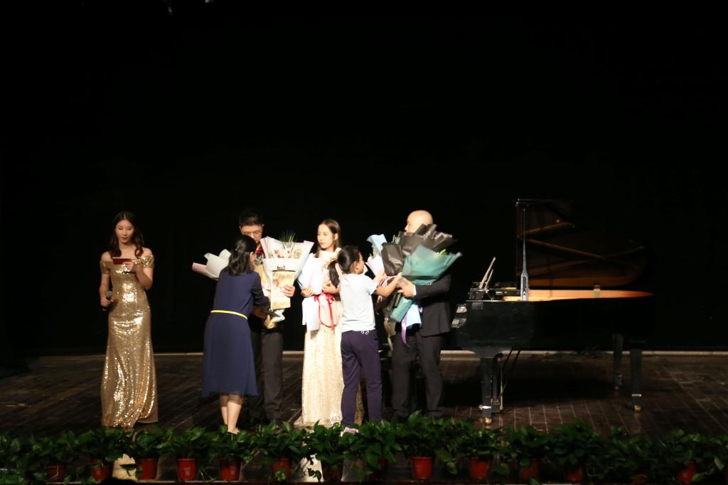 晚会在杨飞虎老师和特邀嘉宾刘苏昊冉共同演奏的钢琴协奏曲《黄河》中宣告结束,铿锵有力的乐曲表现了抗日救亡的革命激情,表现了伟大的民族精神和强烈的爱国情感,培养员工爱国主义情操。众多师生拥上台为许霖琳和杨飞虎送上鲜花,“杨老师你今天太棒了!”“学姐,加油,很厉害!”一声声称赞,一句句祝福,都沉溺在所有人的欢声笑语中。