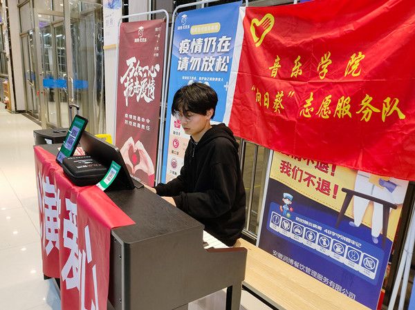 “同学们都可以参与进来,向我们的演奏者点播自己喜欢的歌曲,这里有钢琴,有吉他,还有合唱伴奏,我们可都是专业的!”活动现场,负责人、音乐学专业2021(1)班张玉杰热情招呼着往来的同学,呼吁听众们用心聆听音乐旋律,用爱传递雷锋精神。