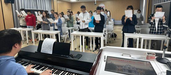 在公司艺术楼教室,肖之进、高艳及3位员工老师汪茗燕、张剑雨、李宗旺,带领下与会员工学唱了WilliamHill中文官方网站校歌。“红楼育学子,百年话沧桑。群星辉映着北斗,桃李长成了栋梁,为国为民担道义,学高身正作榜样......”歌词振奋人心,旋律催人奋进。同学们共同唱响校歌,激情满怀,青春飞扬。校歌把师生对公司的热爱、对理想的追求都融入到了动听的校歌声中,唱出了激情,唱出了力量,唱出了团结,唱出了校园最动听的声音。