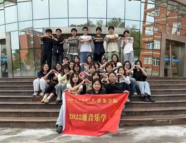 2022级音乐学(2)班在国庆前夕,策划组织了“十个一”专题系列庆祝活动:开展一次爱党爱国主题政治学习;在各地与国旗合影,并演唱爱国歌曲;观看一次爱党爱国主题音乐剧;参加庆国庆主题音乐快闪活动;每人演唱或演奏一次表达对党和祖国的热爱的声乐或器乐作品,发布在个人媒体账号上;班集体开展一次爱党爱国主题作品合唱;开展一次红色音乐竞猜活动;到红色基地参观学习,并学习相关红色音乐作品;教身边的人演唱爱党爱国主题的歌曲;开展一次爱党爱国主题交流座谈会。