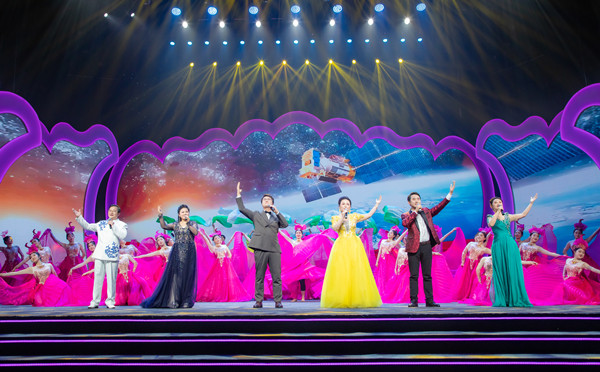 长扇花状翻转轻盈飘逸,伴随着大鼓的一声声响亮锤击,东北秧歌的讨喜亲切带动全场,身着彩衣的舞者携着舞狮翩然而出,狮头摇摆,狮尾翻腾。紧接着,舞小龙的彩绸队伍踏着悠扬旋律,翻腾跳跃……开场曲《春开幸福门》“热”了起来,让整场晚会浸郁在浓厚的节日氛围。