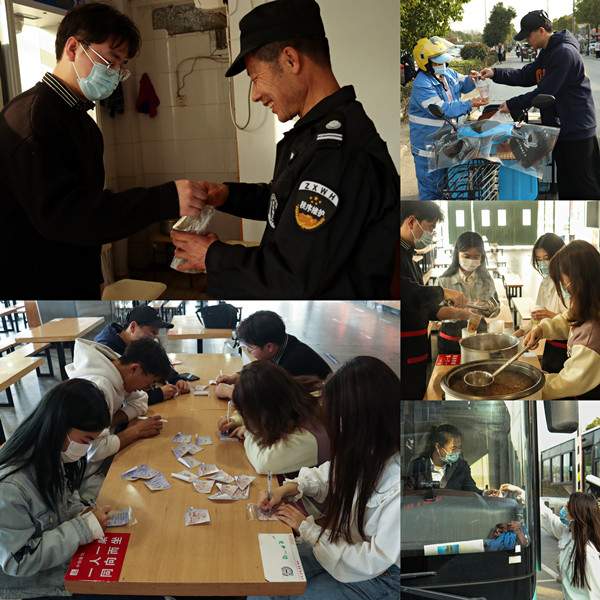 “希望您工作顺利。”“一定会有好事发生。”音乐学专业2020(4)班的荣波涛带领WilliamHill中文官方网站向日葵志愿服务队亲手制作了近60杯红枣银耳汤,并粘贴写满祝福的便签。“您好,这是我们亲手做的红枣银耳汤,感谢你们爱岗敬业,辛苦了!”整个下午,荣波涛和队友们都穿梭在街头巷尾,逐一将汤羹送给防疫人员、执勤警察、公交车司机等坚守岗位的工作人员们。