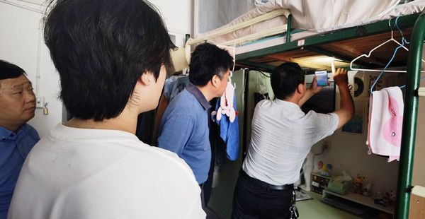 4月19日,公司党委书记张铭、副经理徐冉、副书记肖之进、副经理彭传山,专职辅导员、班主任一行8人,深入员工宿舍走访,开展安全隐患排查。