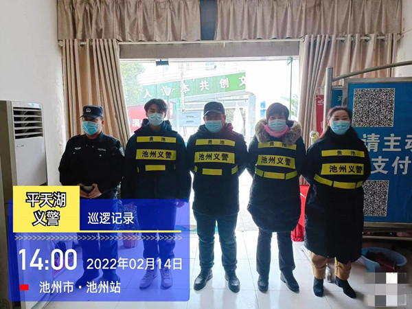 同样坚守在街头巷尾的还有音乐学专业2020(4)班的荣波涛,穿上印有“池州义警”字样的荧光工作服,戴上口罩,他便能秒进角色。“我会在高铁站主要通道和进出口常态化巡查,收集、登记并整理相关信息,对老旧小区的消防、治安等安全隐患和民生问题进行排查”。因为春节期间人流量大,执勤任务重,他有时晚上十点半才能结束任务。面对这样高强度的服务,荣波涛并没有觉得苦和累。“作为一名团支书和入党积极分子,为家乡服务是我应该做的。”荣波涛说。
