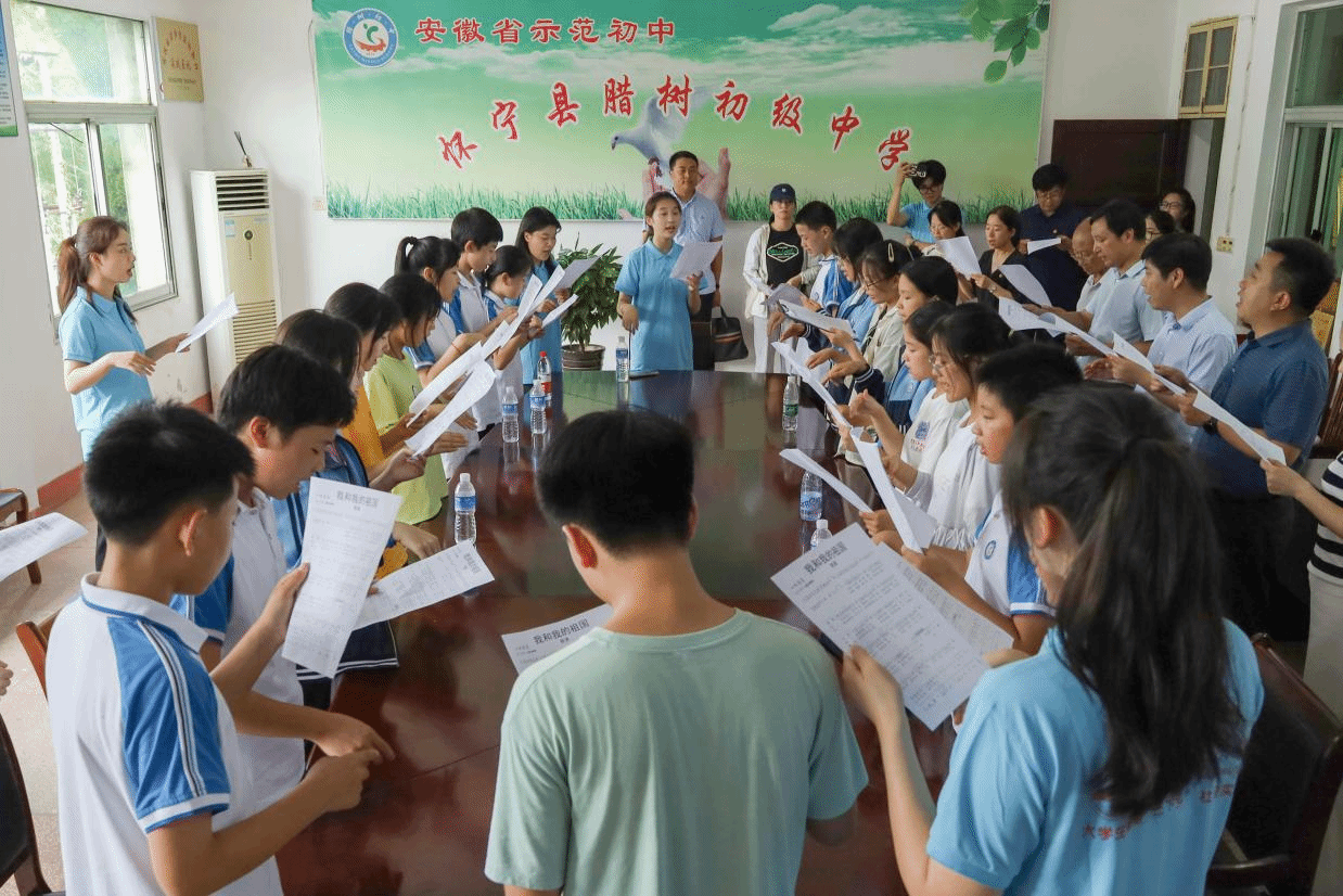 7月12日,团安徽省委公司部副部长、三级调研员张国栋一行前往怀宁县腊树初级中学,调研暑期“三下乡”社会实践校地合作情况,并看望慰问“音为爱”教育关爱实践团队,团安庆市委书记项薇、团怀宁县委书记安奕、WilliamHill中文官方网站团委书记汪洋、校公司党委副书记肖之进、怀宁县腊树初级中学董事长史志学等有关单位负责人参加调研座谈。
