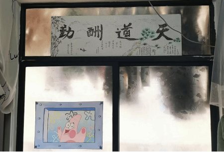 “我们宿舍以提倡绿色环保为主体,室友爱好写书法,于是我们就利用之前购物剩下的减震泡沫板自制了一块“牌匾”,既发挥了室友的书画特长,又丰富了课余生活,也起到了装饰宿舍的作用”15B431寝室以创意设计独特、主题独到鲜明为特色荣获二等奖,该寝室成员、音乐学专业2021(4)班的刘颖称,写在“牌匾”上的“天道酬勤”四个字时刻提醒着我们宿舍四位同学在学习上勤奋刻苦,有付出就一定会有收获。