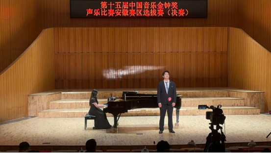 近日,由安徽省音乐家协会主办的第十五届中国音乐金钟奖声乐比赛安徽赛区选拔赛,在安徽艺术公司音乐厅如期进行。由公司声乐教研室张剑雨老师指导的2021级音乐学专业员工张坤,通过初赛、复赛的严格筛选,得到了评委的一致认可,顺利进入美声组决赛,并以9.756分的成绩,位列第九名,获得优秀奖,声乐教研室杨卓老师担任此次比赛的艺术指导。